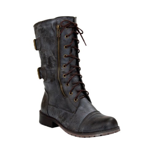 Rise up the fashion ranks in the military-inspired BCBGeneration Zuton booties. These boots feature a leather or canvas upper with an open peep toe and bold lace-up detailing. Man-made lining and a padded man-made insole offer soft, smooth comfort. A stiletto heel adds a sexy lift. The man-made outsole is very durable.